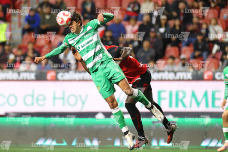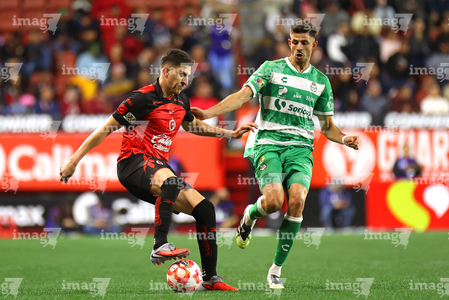 Tijuana, Baja California, 8 de marzo de 2026. Javier Güemez y Unai Bilbao, durante el partido correspondiente a la jornada 10 del torneo Clausura 2026 de la Liga BBVA MX, entre los Xolos de Tijuana y los Guerreros de Santos Laguna, realizado en el estadio Caliente. Foto: Imago7/ David Vega
