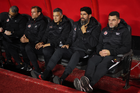 Tijuana, Baja California, 8 de marzo de 2026. Sebastián "Loco" Abreu, director técnico y su cuerpo técnico, durante el partido correspondiente a la jornada 10 del torneo Clausura 2026 de la Liga BBVA MX, entre los Xolos de Tijuana y los Guerreros de Santos Laguna, realizado en el estadio Caliente. Foto: Imago7/ David Vega