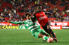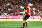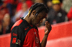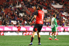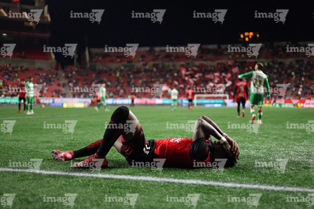 Tijuana, Baja California, 8 de marzo de 2026. Frank Boya en lamento, durante el partido correspondiente a la jornada 10 del torneo Clausura 2026 de la Liga BBVA MX, entre los Xolos de Tijuana y los Guerreros de Santos Laguna, realizado en el estadio Caliente. Foto: Imago7/ David Vega