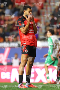 Tijuana, Baja California, 8 de marzo de 2026. Iván Tona en lamento, durante el partido correspondiente a la jornada 10 del torneo Clausura 2026 de la Liga BBVA MX, entre los Xolos de Tijuana y los Guerreros de Santos Laguna, realizado en el estadio Caliente. Foto: Imago7/ David Vega