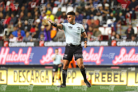 Tijuana, Baja California, 8 de marzo de 2026. Guillermo Pacheco Larios, árbitro central, durante el partido correspondiente a la jornada 10 del torneo Clausura 2026 de la Liga BBVA MX, entre los Xolos de Tijuana y los Guerreros de Santos Laguna, realizado en el estadio Caliente. Foto: Imago7/ David Vega
