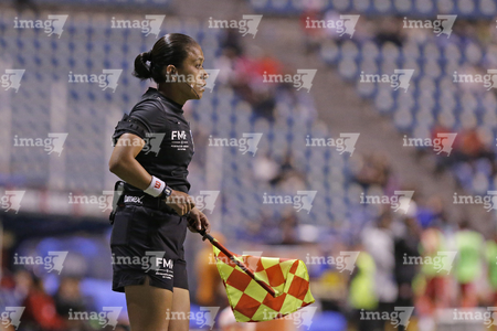 Puebla, Puebla, 13 de marzo de 2026. Jessica Fernanda Morales, árbitra asistente, durante el partido correspondiente a la jornada 11 del torneo Clausura 2026 de la Liga BBVA MX, entre el Club Puebla y los Rayos del Necaxa, realizado en el estadio Cuauhtémoc. Foto: Imago7/Mireya Novo