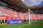Aguascalientes, Aguascalientes, 20 de marzo de 2026. Red de portería, durante el partido correspondiente a la jornada 12 del torneo Clausura 2026 de la Liga BBVA MX, entre los Rayos del Necaxa y los Xolos de Tijuana, realizado en el estadio Victoria. Foto: Imago7/ Pablo Ramírez