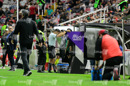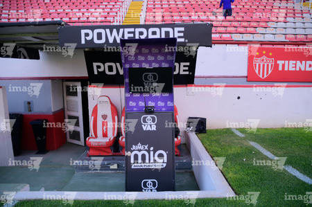 Aguascalientes, Aguascalientes, 20 de marzo de 2026. Sistema de video asistente del árbitro VAR, durante el partido correspondiente a la jornada 12 del torneo Clausura 2026 de la Liga BBVA MX, entre los Rayos del Necaxa y los Xolos de Tijuana, realizado en el estadio Victoria. Foto: Imago7/ Pablo Ramírez