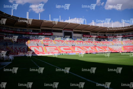 Aguascalientes, Aguascalientes, 20 de marzo de 2026. Panorámica del estadio, durante el partido correspondiente a la jornada 12 del torneo Clausura 2026 de la Liga BBVA MX, entre los Rayos del Necaxa y los Xolos de Tijuana, realizado en el estadio Victoria. Foto: Imago7/ Pablo Ramírez