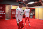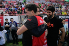 Aguascalientes, Aguascalientes, 20 de marzo de 2026. Martín Varini, director técnico, Diego Abreu y Sebastián "Loco" Abreu, director técnico, durante el partido correspondiente a la jornada 12 del torneo Clausura 2026 de la Liga BBVA MX, entre los Rayos del Necaxa y los Xolos de Tijuana, realizado en el estadio Victoria. Foto: Imago7/ Pablo Ramírez