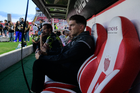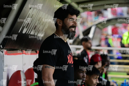 Aguascalientes, Aguascalientes, 20 de marzo de 2026. Sebastián "Loco" Abreu, director técnico, durante el partido correspondiente a la jornada 12 del torneo Clausura 2026 de la Liga BBVA MX, entre los Rayos del Necaxa y los Xolos de Tijuana, realizado en el estadio Victoria. Foto: Imago7/ Rogelio Davila