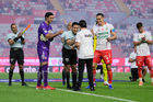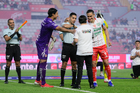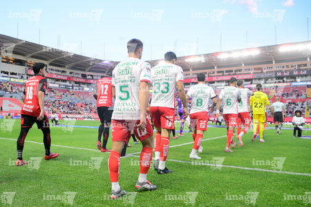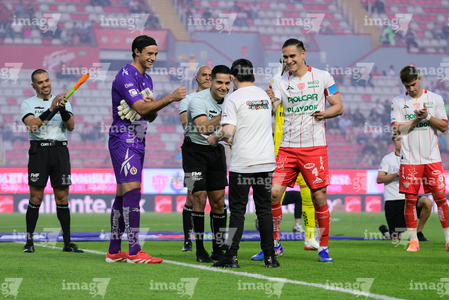 Aguascalientes, Aguascalientes, 20 de marzo de 2026. Protocolo, durante el partido correspondiente a la jornada 12 del torneo Clausura 2026 de la Liga BBVA MX, entre los Rayos del Necaxa y los Xolos de Tijuana, realizado en el estadio Victoria. Foto: Imago7/ Pablo Ramírez