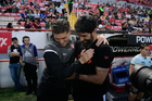 Aguascalientes, Aguascalientes, 20 de marzo de 2026. Martín Varini, director técnico y Sebastián "Loco" Abreu, director técnico, durante el partido correspondiente a la jornada 12 del torneo Clausura 2026 de la Liga BBVA MX, entre los Rayos del Necaxa y los Xolos de Tijuana, realizado en el estadio Victoria. Foto: Imago7/ Pablo Ramírez