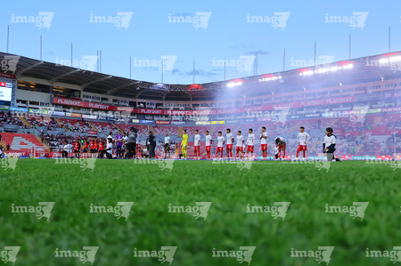 Aguascalientes, Aguascalientes, 20 de marzo de 2026. Protocolo, durante el partido correspondiente a la jornada 12 del torneo Clausura 2026 de la Liga BBVA MX, entre los Rayos del Necaxa y los Xolos de Tijuana, realizado en el estadio Victoria. Foto: Imago7/ Rogelio Davila