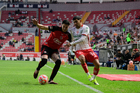 Aguascalientes, Aguascalientes, 20 de marzo de 2026. Cristian Calderón "Chicote", durante el partido correspondiente a la jornada 12 del torneo Clausura 2026 de la Liga BBVA MX, entre los Rayos del Necaxa y los Xolos de Tijuana, realizado en el estadio Victoria. Foto: Imago7/ Pablo Ramírez