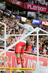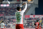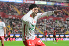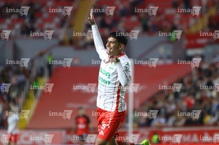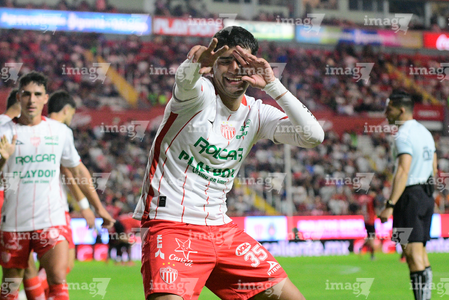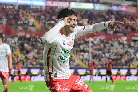 Aguascalientes, Aguascalientes, 20 de marzo de 2026. Javier Ruiz en festejo de gol, durante el partido correspondiente a la jornada 12 del torneo Clausura 2026 de la Liga BBVA MX, entre los Rayos del Necaxa y los Xolos de Tijuana, realizado en el estadio Victoria. Foto: Imago7/ Pablo Ramírez