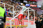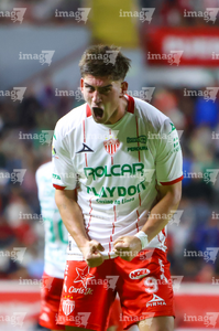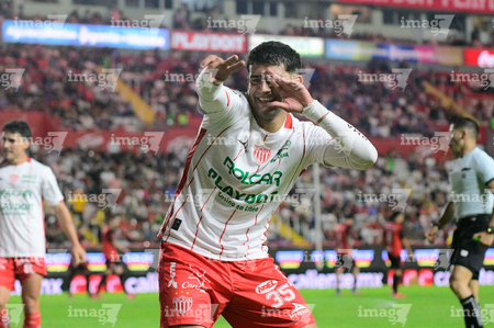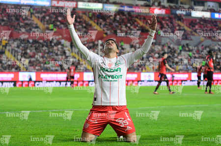 Aguascalientes, Aguascalientes, 20 de marzo de 2026. Tomas Badaloni en festejo de gol, durante el partido correspondiente a la jornada 12 del torneo Clausura 2026 de la Liga BBVA MX, entre los Rayos del Necaxa y los Xolos de Tijuana, realizado en el estadio Victoria. Foto: Imago7/ Rogelio Davila