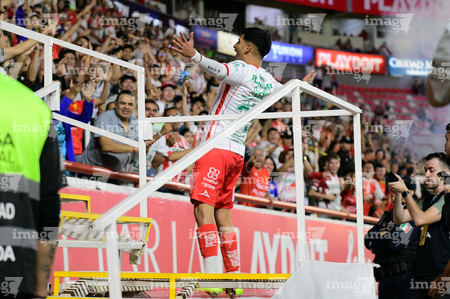 Aguascalientes, Aguascalientes, 20 de marzo de 2026. Javier Ruiz en festejo de gol, durante el partido correspondiente a la jornada 12 del torneo Clausura 2026 de la Liga BBVA MX, entre los Rayos del Necaxa y los Xolos de Tijuana, realizado en el estadio Victoria. Foto: Imago7/ Rogelio Davila