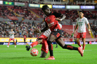 Aguascalientes, Aguascalientes, 20 de marzo de 2026. Frank Boya, durante el partido correspondiente a la jornada 12 del torneo Clausura 2026 de la Liga BBVA MX, entre los Rayos del Necaxa y los Xolos de Tijuana, realizado en el estadio Victoria. Foto: Imago7/ Pablo Ramírez