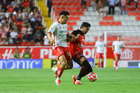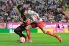 Aguascalientes, Aguascalientes, 20 de marzo de 2026. Raúl Martínez (D), durante el partido correspondiente a la jornada 12 del torneo Clausura 2026 de la Liga BBVA MX, entre los Rayos del Necaxa y los Xolos de Tijuana, realizado en el estadio Victoria. Foto: Imago7/ Pablo Ramírez