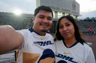 Ciudad de México, 21 de marzo de 2026. Afición en festejo, durante el partido correspondiente a la jornada 12 del torneo Clausura 2026 de la Liga BBVA MX, entre los Pumas de la UNAM y las Águilas del América, realizado en el estadio Olímpico Universitario. Foto: Imago7/ Alexis Chavez