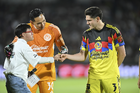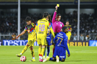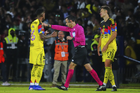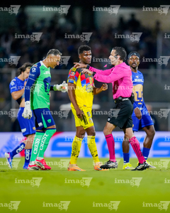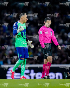Ciudad de México, 21 de marzo de 2026. Keylor Navas en reclamo a César Arturo Ramos Palazuelos, árbitro central, durante el partido correspondiente a la jornada 12 del torneo Clausura 2026 de la Liga BBVA MX, entre los Pumas de la UNAM y las Águilas del América, realizado en el estadio Olímpico Universitario. Foto: Imago7/ Diego Padilla