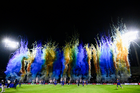 Ciudad de México, 21 de marzo de 2026. Espectáculo de Medio Tiempo, durante el partido correspondiente a la jornada 12 del torneo Clausura 2026 de la Liga BBVA MX, entre los Pumas de la UNAM y las Águilas del América, realizado en el estadio Olímpico Universitario. Foto: Imago7/ Diego Padilla