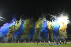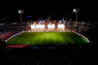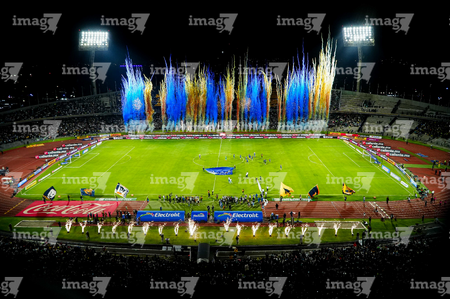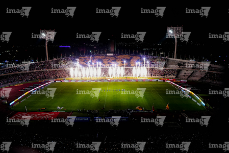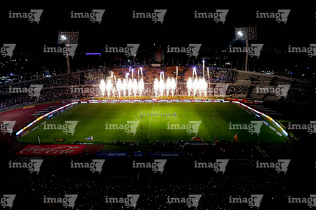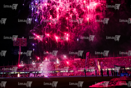 Ciudad de México, 21 de marzo de 2026. Fuegos artificiales, durante el partido correspondiente a la jornada 12 del torneo Clausura 2026 de la Liga BBVA MX, entre los Pumas de la UNAM y las Águilas del América, realizado en el estadio Olímpico Universitario. Foto: Imago7/ Alexis Chavez