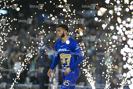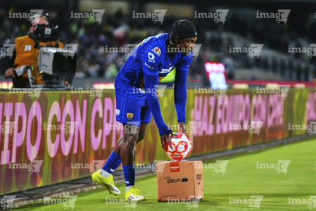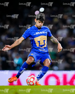Ciudad de México, 21 de marzo de 2026. Alvaro Angulo toma Balón de futbol Voit Aereus de caja de Amazon, durante el partido correspondiente a la jornada 12 del torneo Clausura 2026 de la Liga BBVA MX, entre los Pumas de la UNAM y las Águilas del América, realizado en el estadio Olímpico Universitario. Foto: Imago7/ Carlos Vargas