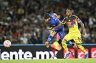 Ciudad de México, 21 de marzo de 2026. Rubén Duarte y Alejandro Zendejas, durante el partido correspondiente a la jornada 12 del torneo Clausura 2026 de la Liga BBVA MX, entre los Pumas de la UNAM y las Águilas del América, realizado en el estadio Olímpico Universitario. Foto: Imago7/ Etzel Espinosa
