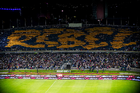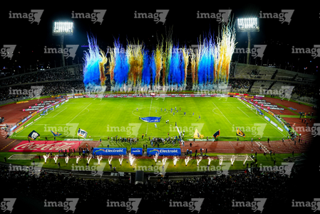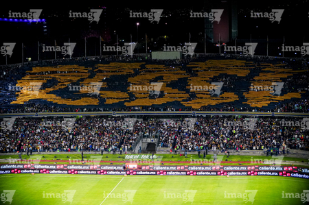 Ciudad de México, 21 de marzo de 2026. Mosaico y Fuegos artificiales, durante el partido correspondiente a la jornada 12 del torneo Clausura 2026 de la Liga BBVA MX, entre los Pumas de la UNAM y las Águilas del América, realizado en el estadio Olímpico Universitario. Foto: Imago7/ Diego Padilla