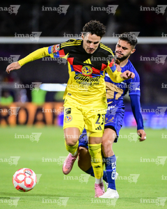 Ciudad de México, 21 de marzo de 2026. Detalle en estampado de Brian Rodríguez, durante el partido correspondiente a la jornada 12 del torneo Clausura 2026 de la Liga BBVA MX, entre los Pumas de la UNAM y las Águilas del América, realizado en el estadio Olímpico Universitario. Foto: Imago7/ Alexis Chavez
