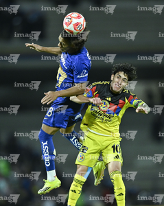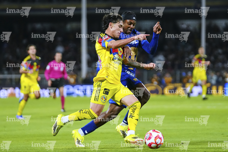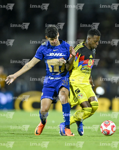 Ciudad de México, 21 de marzo de 2026. Alvaro Angulo y Pedro Vite, durante el partido correspondiente a la jornada 12 del torneo Clausura 2026 de la Liga BBVA MX, entre los Pumas de la UNAM y las Águilas del América, realizado en el estadio Olímpico Universitario. Foto: Imago7/ Alexis Chavez
