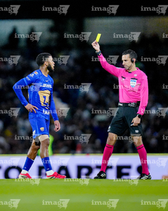 Ciudad de México, 21 de marzo de 2026. César Arturo Ramos Palazuelos, árbitro central muestra tarjeta amarilla de amonestación a Guillermo Martínez, durante el partido correspondiente a la jornada 12 del torneo Clausura 2026 de la Liga BBVA MX, entre los Pumas de la UNAM y las Águilas del América, realizado en el estadio Olímpico Universitario. Foto: Imago7/ Diego Padilla m