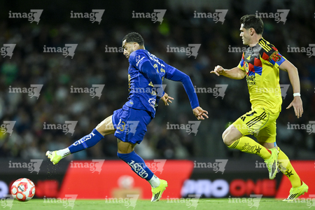 Ciudad de México, 21 de marzo de 2026. Robert Morales y Cristian Borja, durante el partido correspondiente a la jornada 12 del torneo Clausura 2026 de la Liga BBVA MX, entre los Pumas de la UNAM y las Águilas del América, realizado en el estadio Olímpico Universitario. Foto: Imago7/ Etzel Espinosa
