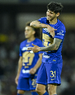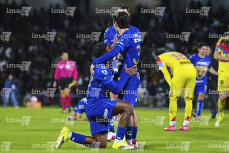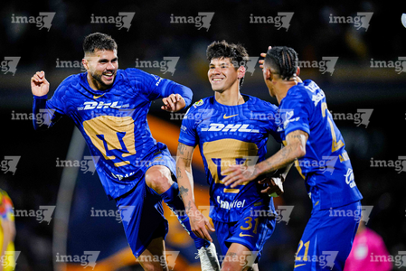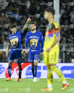 Ciudad de México, 21 de marzo de 2026. Alvaro Angulo y Jordan Carrillo en festejo, durante el partido correspondiente a la jornada 12 del torneo Clausura 2026 de la Liga BBVA MX, entre los Pumas de la UNAM y las Águilas del América, realizado en el estadio Olímpico Universitario. Foto: Imago7/ Carlos Vargas