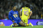 Ciudad de México, 21 de marzo de 2026. Rodrigo Dourado resultó lesionado, durante el partido correspondiente a la jornada 12 del torneo Clausura 2026 de la Liga BBVA MX, entre los Pumas de la UNAM y las Águilas del América, realizado en el estadio Olímpico Universitario. Foto: Imago7/ Diego Padilla m
