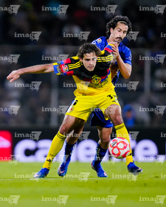 Ciudad de México, 21 de marzo de 2026. Pablo Bennevendo y Patricio Salas, durante el partido correspondiente a la jornada 12 del torneo Clausura 2026 de la Liga BBVA MX, entre los Pumas de la UNAM y las Águilas del América, realizado en el estadio Olímpico Universitario. Foto: Imago7/ Alexis Chavez