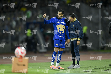 Ciudad de México, 21 de marzo de 2026. Juninho Vieira y Luis Ernesto Pérez, auxiliar técnico, durante el partido correspondiente a la jornada 12 del torneo Clausura 2026 de la Liga BBVA MX, entre los Pumas de la UNAM y las Águilas del América, realizado en el estadio Olímpico Universitario. Foto: Imago7/ Etzel Espinosa