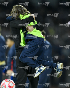 Ciudad de México, 21 de marzo de 2026. Efraín Juárez, director técnico en festejo con su hijo Iker, durante el partido correspondiente a la jornada 12 del torneo Clausura 2026 de la Liga BBVA MX, entre los Pumas de la UNAM y las Águilas del América, realizado en el estadio Olímpico Universitario. Foto: Imago7/ Etzel Espinosa