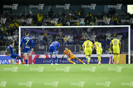 Ciudad de México, 21 de marzo de 2026. Robert Morales anota gol de penal a Rodolfo Cota, durante el partido correspondiente a la jornada 12 del torneo Clausura 2026 de la Liga BBVA MX, entre los Pumas de la UNAM y las Águilas del América, realizado en el estadio Olímpico Universitario. Foto: Imago7/ Etzel Espinosa