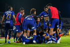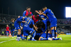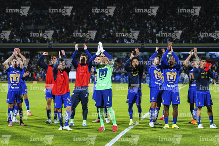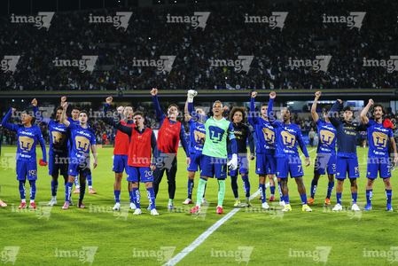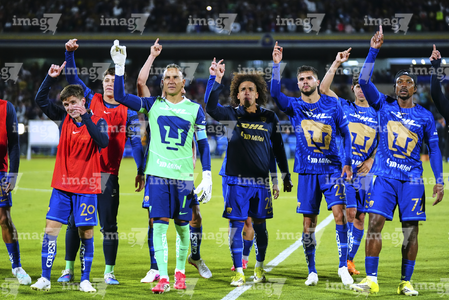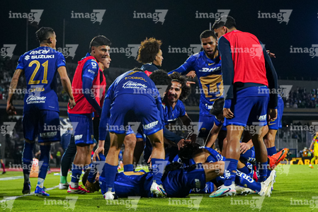 Ciudad de México, 21 de marzo de 2026. Jugadores de Pumas en festejo, durante el partido correspondiente a la jornada 12 del torneo Clausura 2026 de la Liga BBVA MX, entre los Pumas de la UNAM y las Águilas del América, realizado en el estadio Olímpico Universitario. Foto: Imago7/ Carlos Vargas
