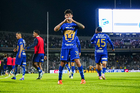 Ciudad de México, 21 de marzo de 2026. Robert Morales en festejo de gol, durante el partido correspondiente a la jornada 12 del torneo Clausura 2026 de la Liga BBVA MX, entre los Pumas de la UNAM y las Águilas del América, realizado en el estadio Olímpico Universitario. Foto: Imago7/ Diego Padilla