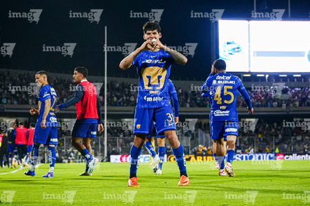 Ciudad de México, 21 de marzo de 2026. Robert Morales en festejo de gol, durante el partido correspondiente a la jornada 12 del torneo Clausura 2026 de la Liga BBVA MX, entre los Pumas de la UNAM y las Águilas del América, realizado en el estadio Olímpico Universitario. Foto: Imago7/ Etzel Espinosa