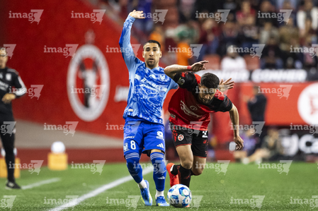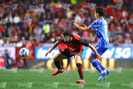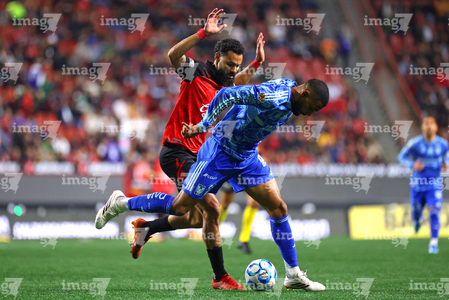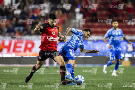 Tijuana, Baja California, 3 de abril de 2026. Iván Tona y Ángel Correa, durante el partido correspondiente a la jornada 13 del torneo Clausura 2026 de la Liga BBVA MX, entre los Xolos de Tijuana y los Tigres de la UANL, realizado en el estadio Caliente. Foto: Imago7/Alejandro Gutiérrez Mora
