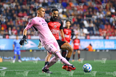 Tijuana, Baja California, 3 de abril de 2026. Rafael Fernández, durante el partido correspondiente a la jornada 13 del torneo Clausura 2026 de la Liga BBVA MX, entre los Xolos de Tijuana y los Tigres de la UANL, realizado en el estadio Caliente. Foto: Imago7/ David Vega