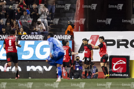 Tijuana, Baja California, 3 de abril de 2026. Kevin Castañeda en festejo de gol, durante el partido correspondiente a la jornada 13 del torneo Clausura 2026 de la Liga BBVA MX, entre los Xolos de Tijuana y los Tigres de la UANL, realizado en el estadio Caliente. Foto: Imago7/ David Vega