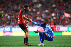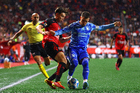 Tijuana, Baja California, 3 de abril de 2026. Ángel Correa y José Antonio Rodríguez, durante el partido correspondiente a la jornada 13 del torneo Clausura 2026 de la Liga BBVA MX, entre los Xolos de Tijuana y los Tigres de la UANL, realizado en el estadio Caliente. Foto: Imago7/Alejandro Gutiérrez Mora