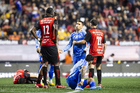 Tijuana, Baja California, 3 de abril de 2026. André-Pierre Gignac en lamento, durante el partido correspondiente a la jornada 13 del torneo Clausura 2026 de la Liga BBVA MX, entre los Xolos de Tijuana y los Tigres de la UANL, realizado en el estadio Caliente. Foto: Imago7/Alejandro Gutiérrez Mora