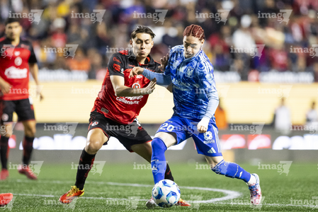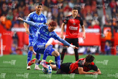 Tijuana, Baja California, 3 de abril de 2026. Marcelo Flores (I), durante el partido correspondiente a la jornada 13 del torneo Clausura 2026 de la Liga BBVA MX, entre los Xolos de Tijuana y los Tigres de la UANL, realizado en el estadio Caliente. Foto: Imago7/ David Vega