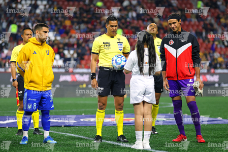 Tijuana, Baja California, 3 de abril de 2026. Protocolo, durante el partido correspondiente a la jornada 13 del torneo Clausura 2026 de la Liga BBVA MX, entre los Xolos de Tijuana y los Tigres de la UANL, realizado en el estadio Caliente. Foto: Imago7/ David Vega