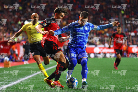 Tijuana, Baja California, 3 de abril de 2026. José Ignacio Rivero y Diego Lainez, durante el partido correspondiente a la jornada 13 del torneo Clausura 2026 de la Liga BBVA MX, entre los Xolos de Tijuana y los Tigres de la UANL, realizado en el estadio Caliente. Foto: Imago7/ David Vega
