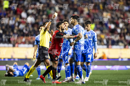 Tijuana, Baja California, 3 de abril de 2026. Fernando Gorriarán en reclamo, durante el partido correspondiente a la jornada 13 del torneo Clausura 2026 de la Liga BBVA MX, entre los Xolos de Tijuana y los Tigres de la UANL, realizado en el estadio Caliente. Foto: Imago7/Alejandro Gutiérrez Mora