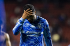 Tijuana, Baja California, 3 de abril de 2026. Rodrigo Aguirre en lamento, durante el partido correspondiente a la jornada 13 del torneo Clausura 2026 de la Liga BBVA MX, entre los Xolos de Tijuana y los Tigres de la UANL, realizado en el estadio Caliente. Foto: Imago7/Alejandro Gutiérrez Mora